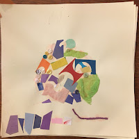 Sometimes children will represent objects they see with collage sooner than then can draw those same objects. The ability to build with shapes in collage may help to facilitate this.