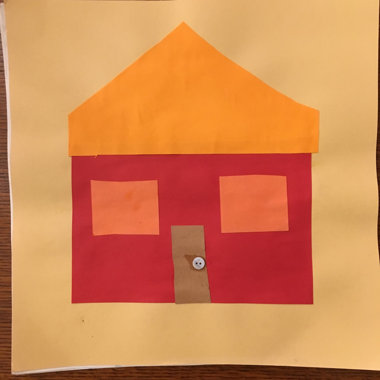 For collage, the stage of representation marks the beginning of assembling shapes to represent an object such as the house shown here.
